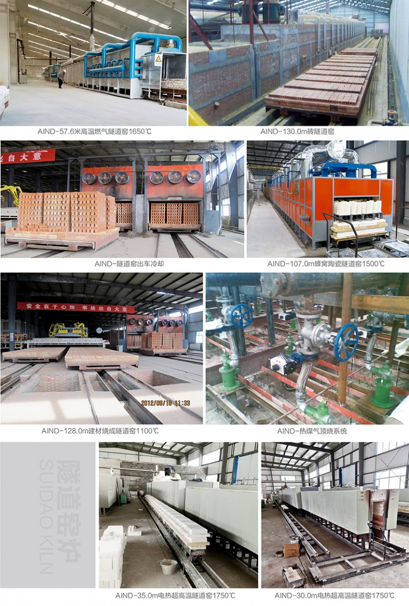 隧道窯爐為連續型窯爐,以窯車為運載工具,具有生產質量溫、產量大、消耗低的特點,適合于工藝成熟批量生產的產品。該窯爐廣泛用于陶瓷產品的焙燒生產,在磨料等冶金行業中也有應用。主要包括以下幾種:窯體、窯內輸送設備、燃料燃燒系統、通風設備。窯體系統的主要部分,窯體上設有各種氣流進出口。