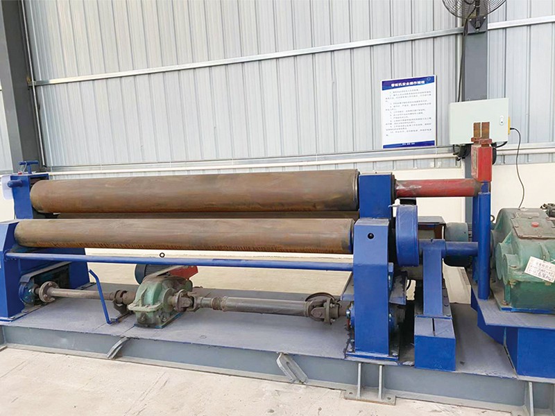 簡析卷板機的工作原理及應用范圍卷板機是對板料進行連續點彎曲的塑形機床,具有卷制O 同的形狀卷板機規格平整的塑性金屬板通過卷板機的三根工作輥(二根下輥、一根上輥) 之間,借助上輥的下壓及下輥的旋轉運動,使金屬板經過多道次連續彎曲(內層 壓縮變形,中層不變,外層拉伸變形),產生塑性變形,卷制成所需要 的圓筒、錐筒或它們的一部分。 卷板機的工作原理是卷板機上輥在兩下輥中央對稱位置通過液壓缸內的液壓油作用于活塞作垂直升降運動,通過主減速機的末級齒輪帶動兩下輥齒輪嚙合作旋轉 運動,為卷制板材提供扭矩。借助上輥的下壓及下輥的旋轉運動,使金屬板經過 多道次連續彎曲,產生塑性變形,卷制成所需要的園筒、錐筒或它們的一部分。